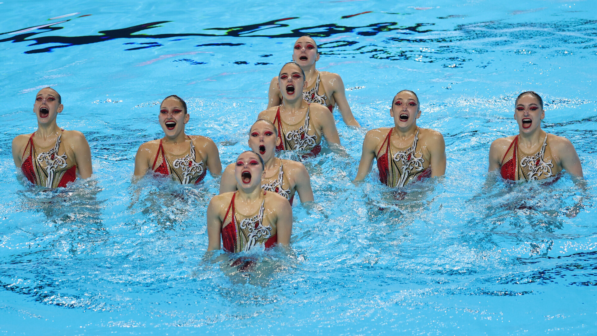 Анна Андрианова, Анастасия Бахтырева, Дарья Гелошвили, Екатерина Коссова, Елизавета Минаева, Эвелина Симонова, Елизавета Смирнова и Агния Тулупова / Фото: © Maddie Meyer / Staff / Getty Images Sport / Gettyimages.ru